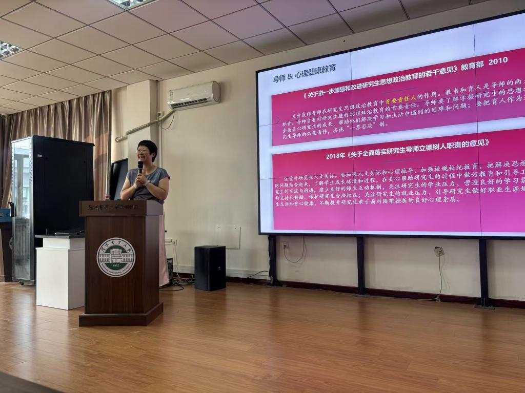 报告中,张冰主任将理论与实践结合,围绕政策解读、典型案例分析、心理问题识别应对及关注学生身心反应等方面展开讲解,针对遇到的问题给出了具体建议。